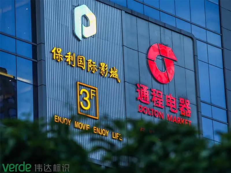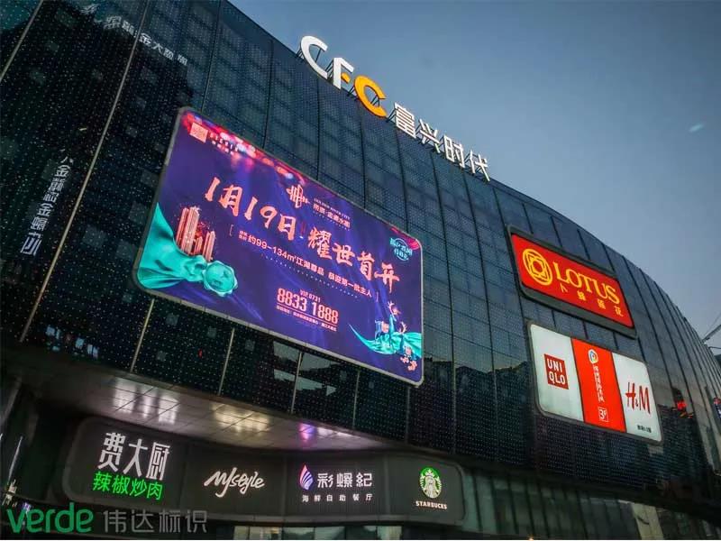 偉達標識利用富興時代外墻上的標識,來進行形象表現,既醒目又不突兀更與建筑外觀相協調,尺寸適宜,風格統一。
